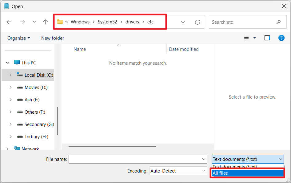 4. Τώρα, κάντε κλικ στο αναπτυσσόμενο που λέειΈγγραφο κειμένου (*.txt*)και επιλέξτε 'Όλα τα αρχεία'.