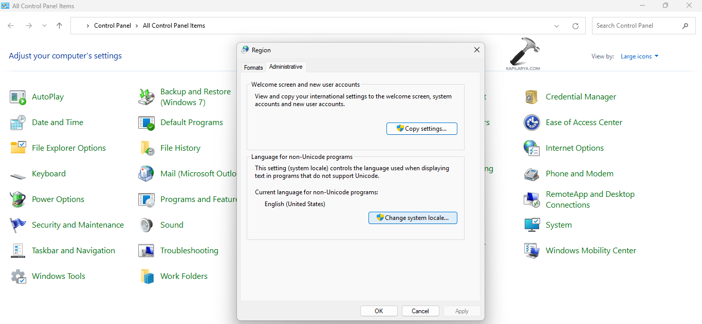 Όταν το σύστημα LOCALE US δεν έχει ρυθμιστεί σωστά, θα μπορούσε να προκαλέσει το ζήτημα του κωδικού σφάλματος 0xC0000142. Έτσι, ακολουθήστε τα παρακάτω βήματα για τη ρύθμιση του σωστού τοπικού συστήματος.