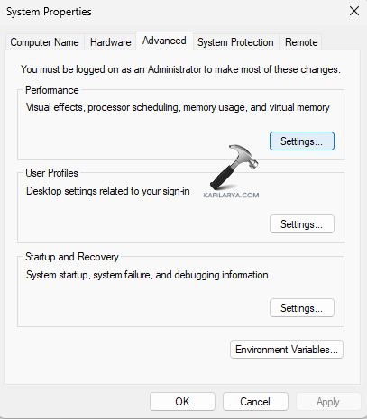 Βήμα 2-Τώρα, κάτω από την απόδοση, επιλέξτε Ρυθμίσεις. Στη συνέχεια, επισκεφθείτε την καρτέλα Πρόληψης Εκτέλεσης Δεδομένων.