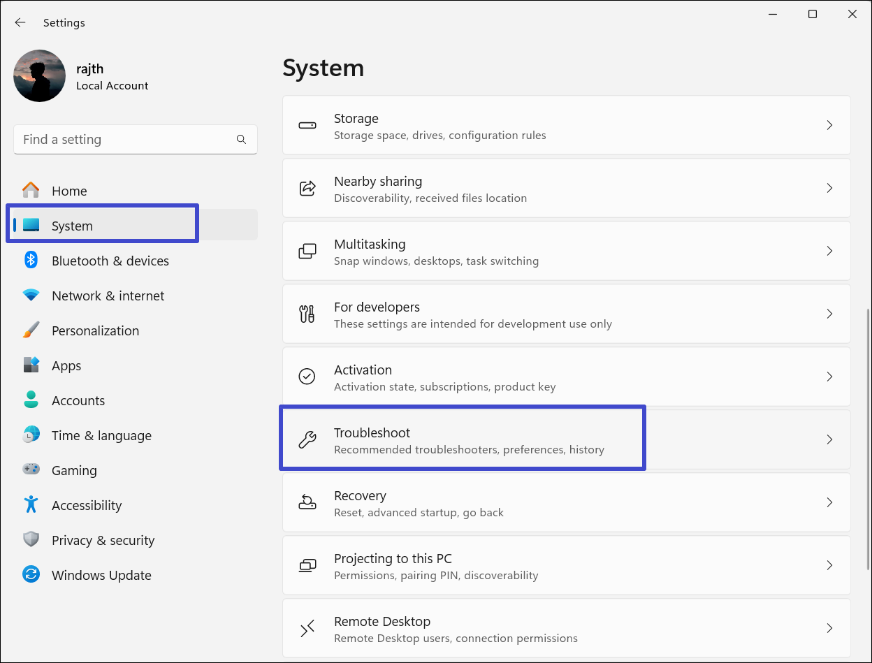 1. Ανοίξτε τις ρυθμίσεις των Windows και μεταβείτε στο "Σύστημα«>«Αντιμετώπιση προβλημάτων«.