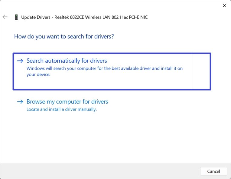 4. Επιλέξτε "Αναζήτηση αυτόματα για πρόγραμμα οδήγησης"Και ακολουθήστε τις οδηγίες στην οθόνη.