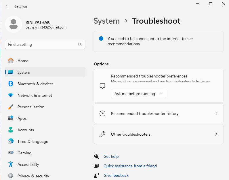 Βήμα 1-Πρώτα απ 'όλα, μεταβείτε στις Ρυθμίσεις> Σύστημα> Αντιμετώπιση προβλημάτων> Άλλοι προβλημάτων.