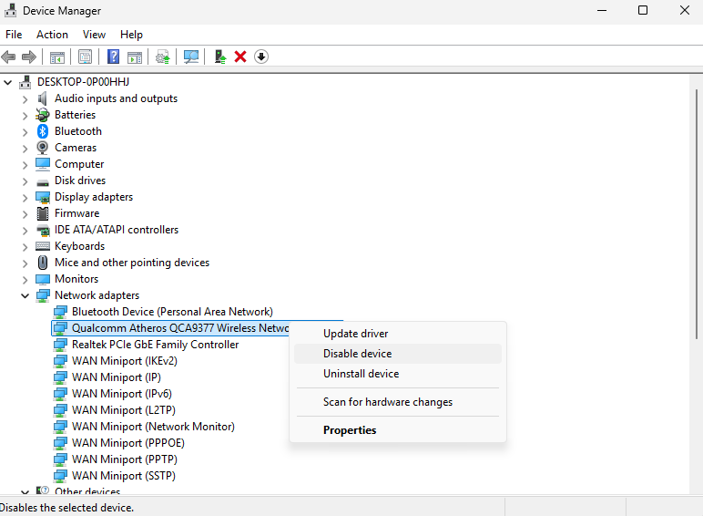 Βήμα 2-Στη συνέχεια, κάντε δεξί κλικ στον προσαρμογέα δικτύου.