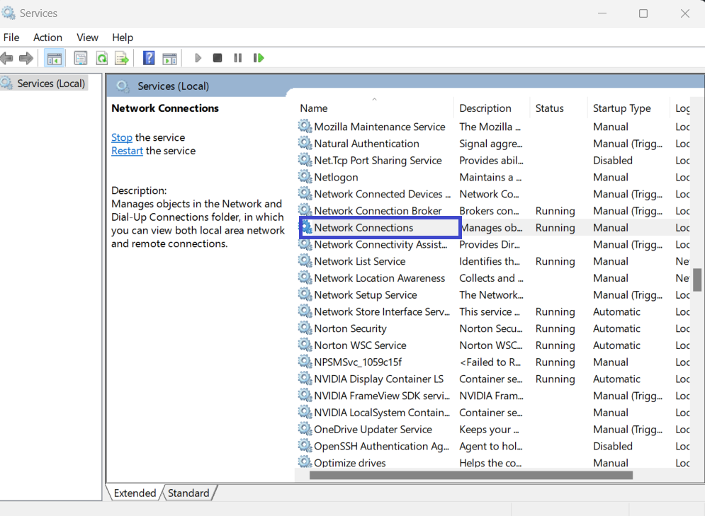 4. Επιστρέψτε στο παράθυρο Υπηρεσιών και κάντε διπλό κλικ στις συνδέσεις δικτύου.