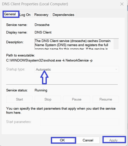 6. Κάντε κλικ στην καρτέλα Γενικά> Ρυθμίστε τον τύπο εκκίνησης σε αυτόματο.