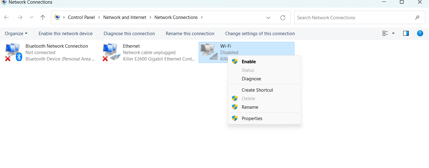 2. Κάντε δεξί κλικ στο Wi-Fi> Επιλέξτε Ενεργοποίηση.