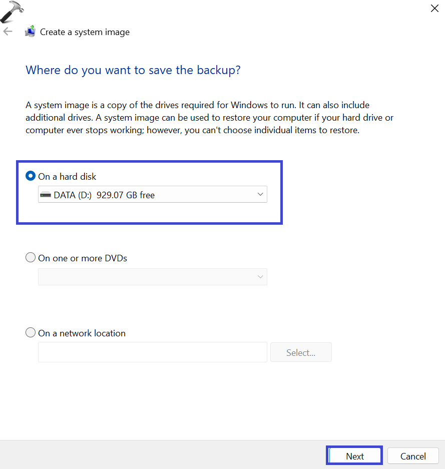 3. Καθορίστε τη θέση όπου θέλετε να αποθηκεύσετε την εικόνα του συστήματος. Μπορεί να είναι: