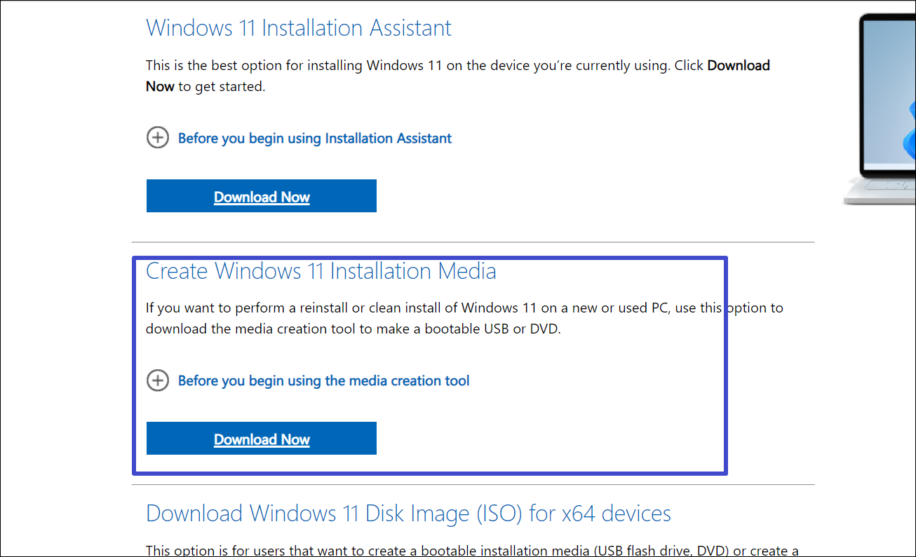 1. Μεταβείτε στον επίσημο ιστότοπο της Microsoft και κατεβάστε το εργαλείο δημιουργίας Windows Installation Media για Windows 11 ή Windows 10 με βάση τις απαιτήσεις σας.