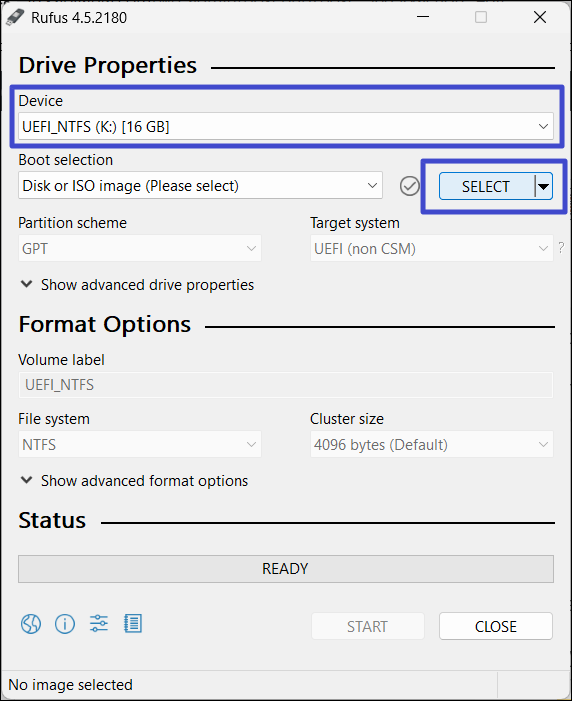 1. Λήψη του Rufus (https://rufus.ie/en) από την επίσημη ιστοσελίδα και ανοίξτε το εργαλείο.