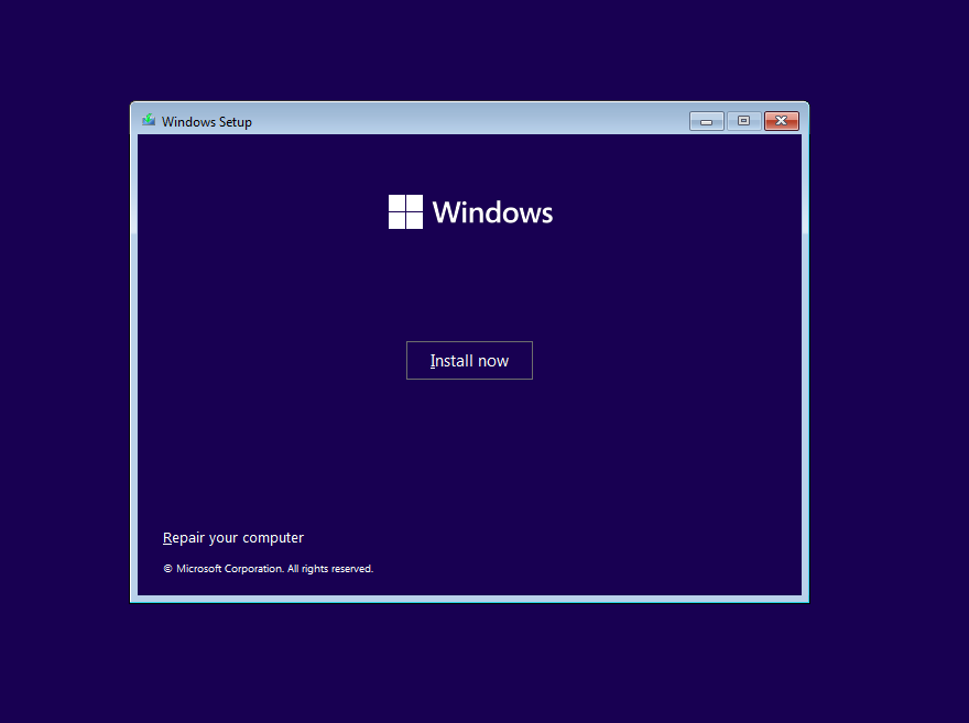 1. Όταν εμφανίζεται το σφάλμα κατά τη διάρκεια της διαδικασίας εγκατάστασης, πατήστεΜετατόπιση + F10Για να ανοίξετε τη γραμμή εντολών ή να επιστρέψετε στην οθόνη πρώτης εγκατάστασης (οθόνη εγκατάστασης τώρα) και κάντε κλικ στο "Επισκευάστε τον υπολογιστή σας"Κάτω δεξιά γωνία.