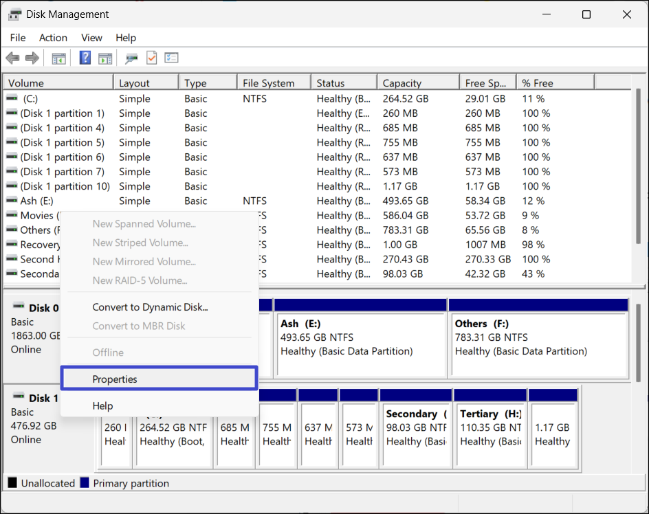 Διαχείριση δίσκωνΠριν μετατρέψετε το διαμέρισμα, πρέπει να επιβεβαιώσετε εάν ο δίσκος σας έχει οριστεί σε σύστημα διαμερισμάτων MBR ή GPT.1. Κάντε δεξί κλικ στο μενού Έναρξης και επιλέξτε "