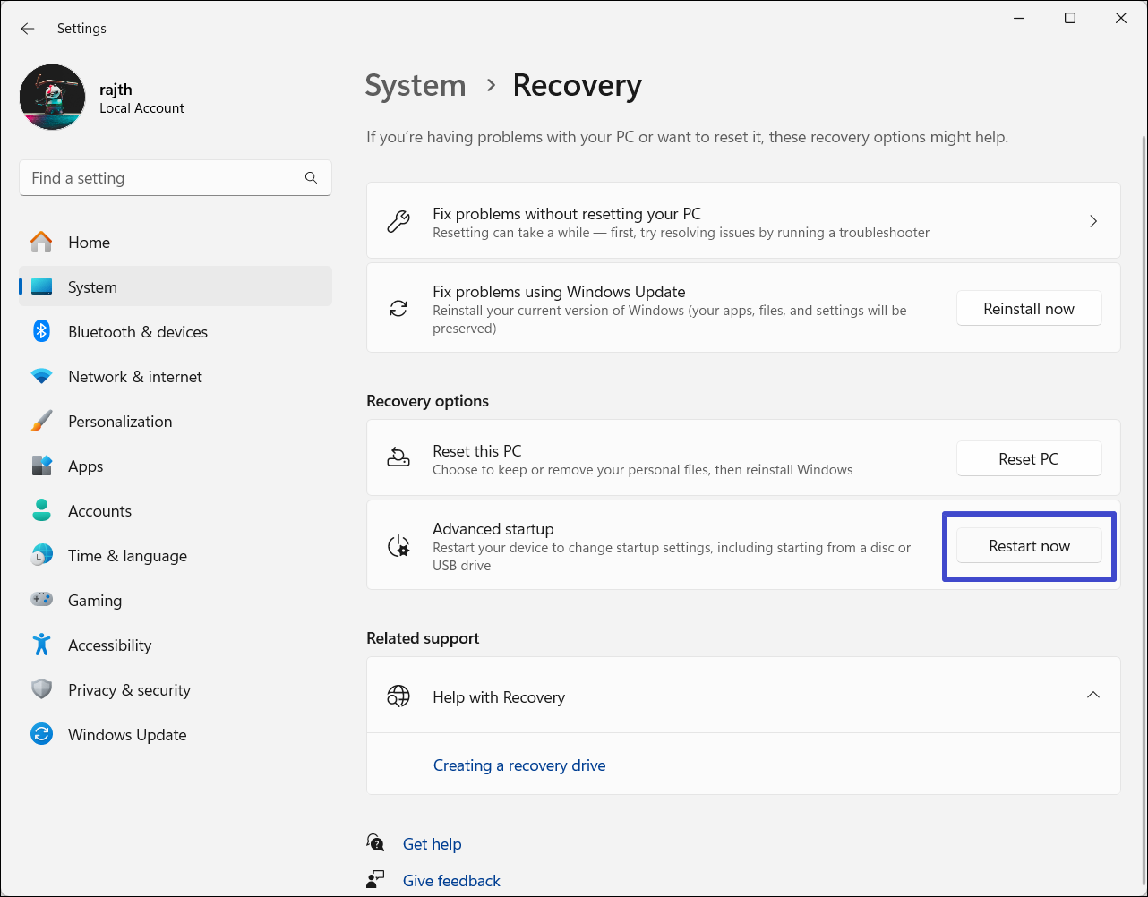 Αντιμετώπιση προβλημάτων"Κουμπί δίπλα στην προηγμένη εκκίνηση.3. Μόλις ανοίξει το περιβάλλον ανάκτησης των Windows, κάντε κλικ στο ""