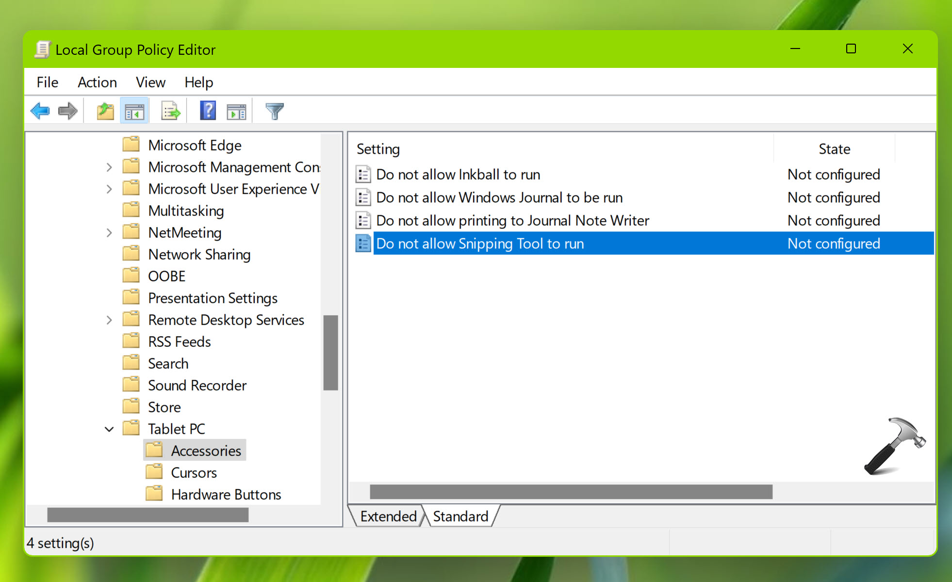 Διαμόρφωση χρήστη> Πρότυπα διαχείρισης> Στοιχεία Windows> Tablet PC> Αξεσουάρ