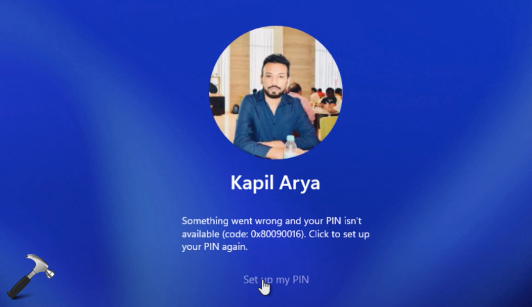 Κάτι πήγε στραβά και ο καρφίτσας σας (κωδικός: 0x80090016). Κάντε κλικ για να ρυθμίσετε ξανά το PIN σας.