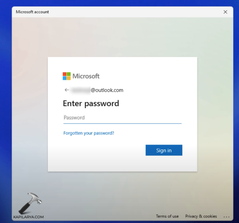 2.Μετά από αυτό, θα εμφανιστεί ένα αναδυόμενο παράθυρο. Σε αυτό το παράθυρο λογαριασμού της Microsoft, θα σας ζητηθεί να εισαγάγετε τον κωδικό πρόσβασης του λογαριασμού της Microsoft. Μόλις εισαγάγετε αυτό, κάντε κλικΣυνδεθώ.