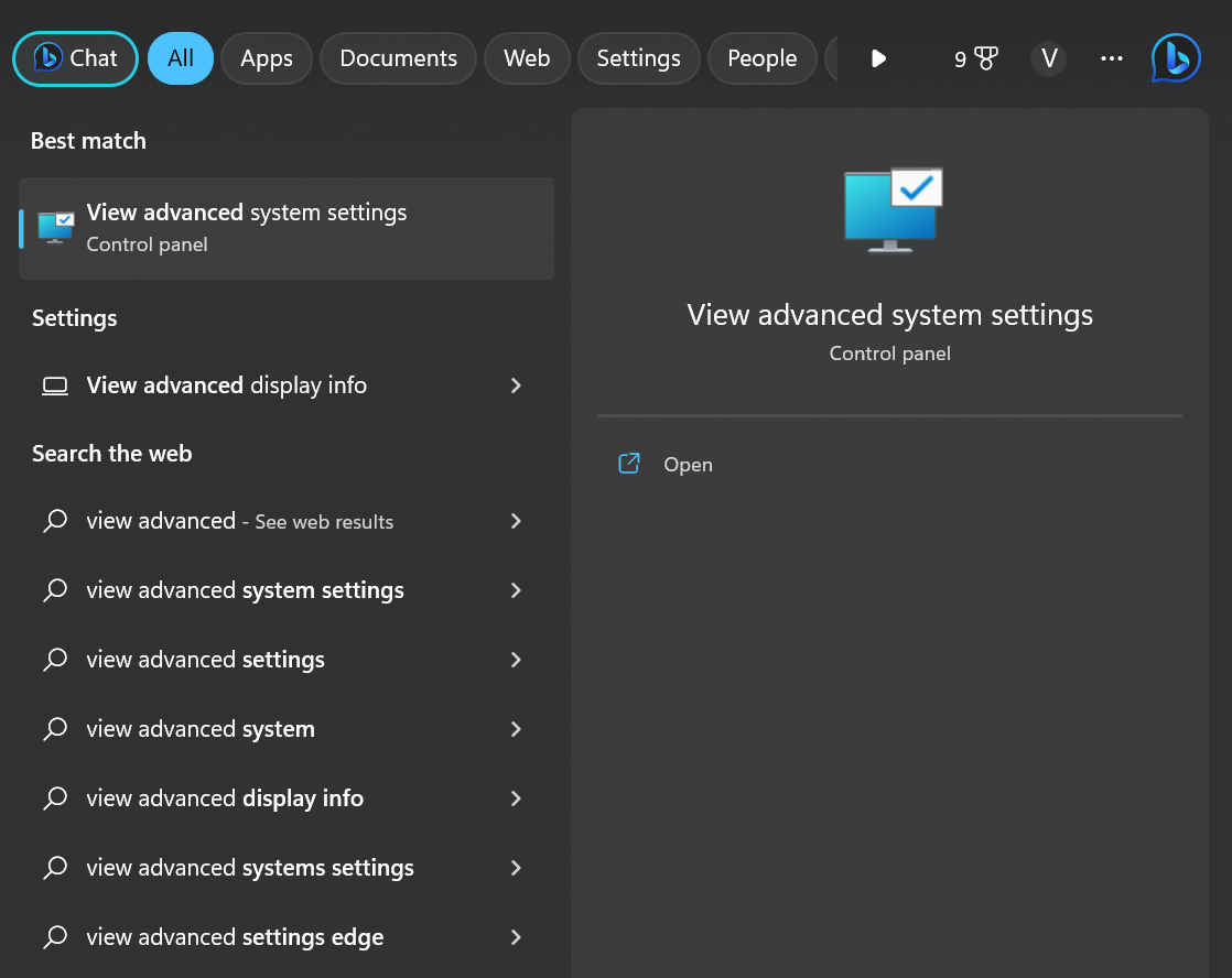 - ΣτοΓραμμή αναζήτησης, πληκτρολογώΠροβολή προχωρημένου συστήματοςΡυθμίσεις.