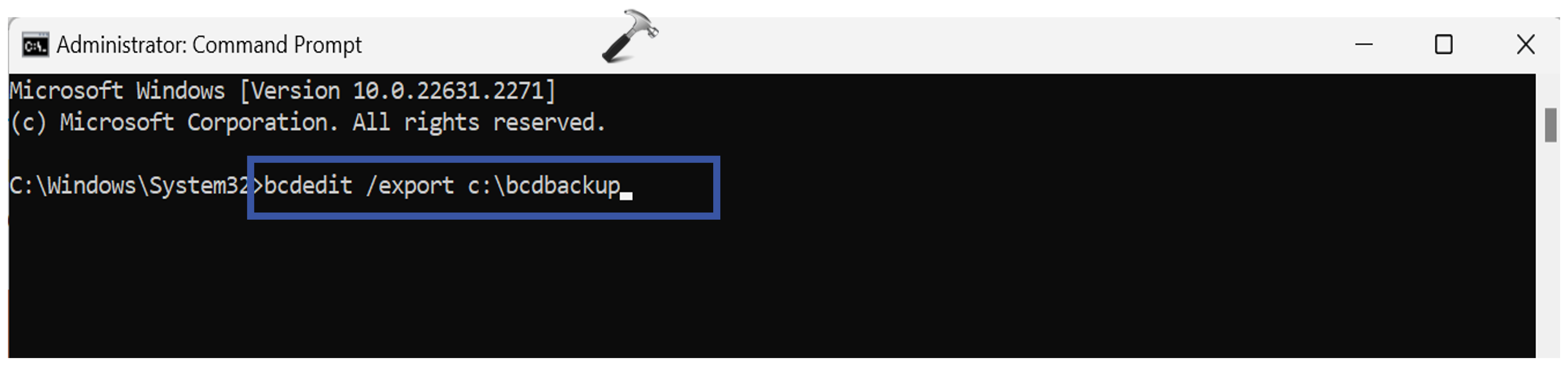 bcdedit /export c:bcdbackup