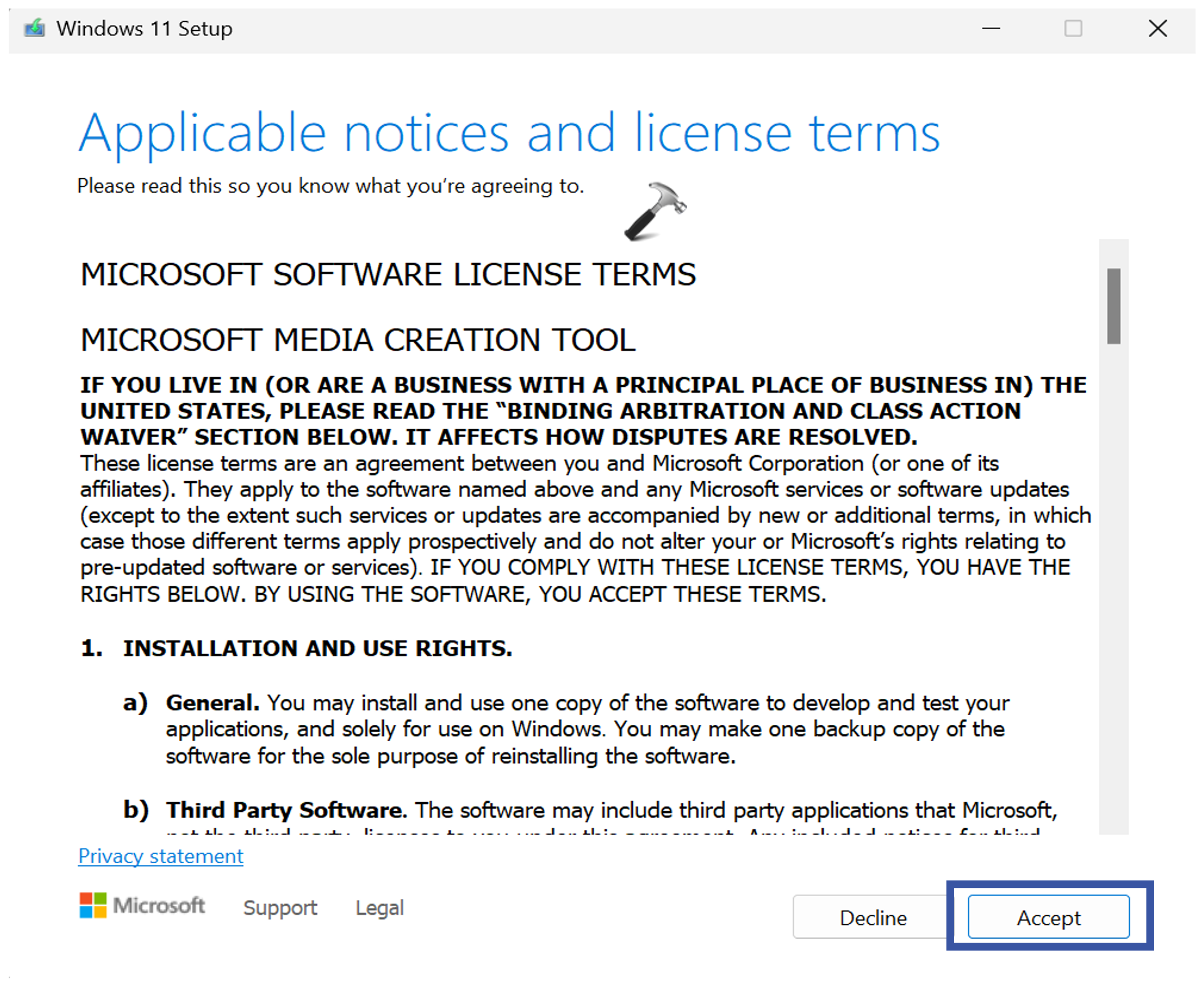 6. Αποδεχτείτε τους όρους άδειας και κάντε κλικΕπόμενος.