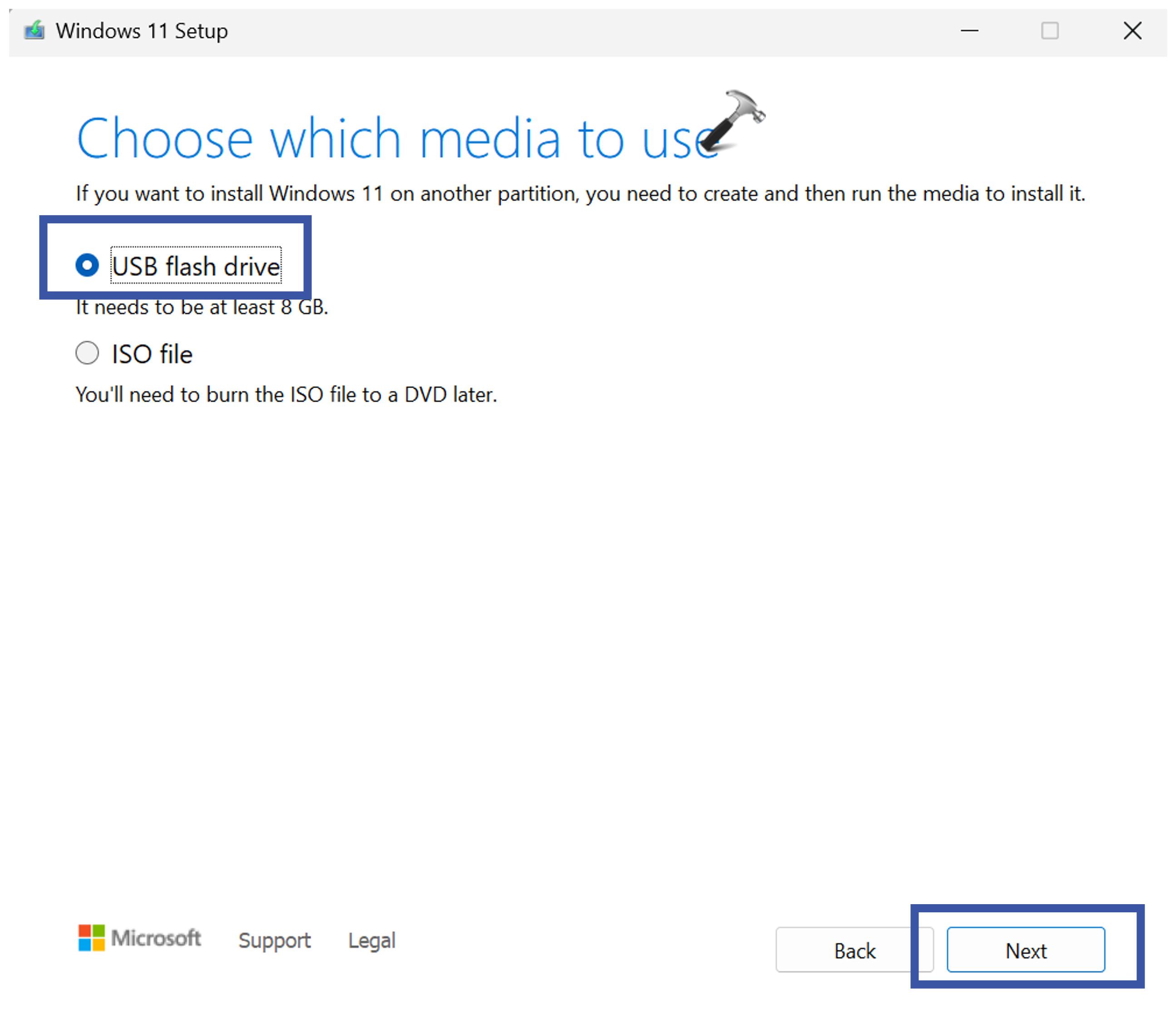5. Μετά από αυτό, το "Επιλέξτε ποια μέσα θα χρησιμοποιηθούνΘα εμφανιστεί το πλαίσιο προτροπής. Επιλέξτε "Μονάδα flash USB"Και κάντε κλικ στο"Επόμενος«.
