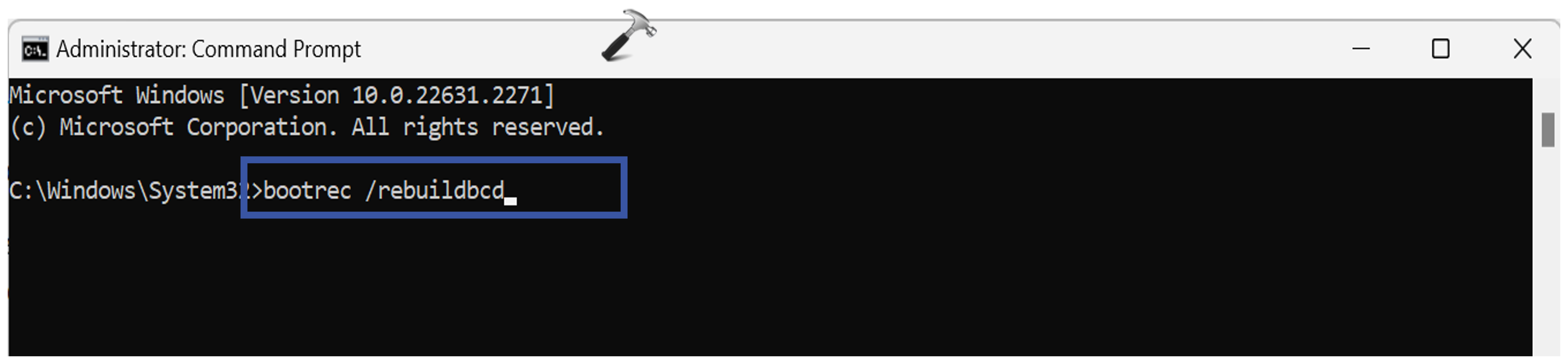 bootrec /rebuildbcd