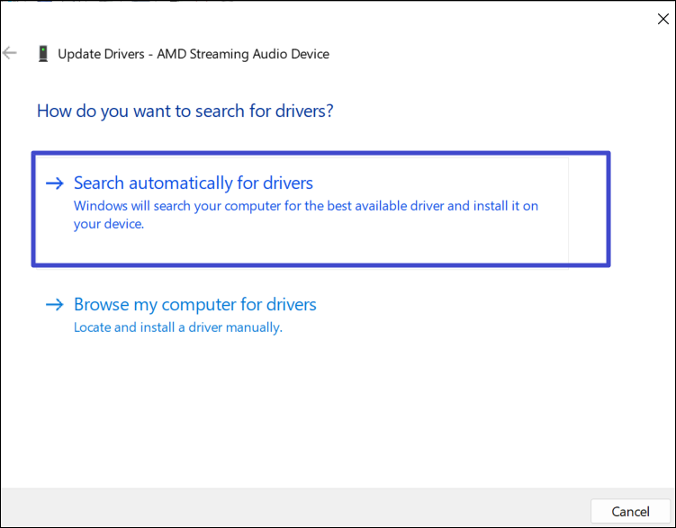 4. Μετά από αυτό, επιλέξτε "Αναζήτηση αυτόματα για τους οδηγούς«.