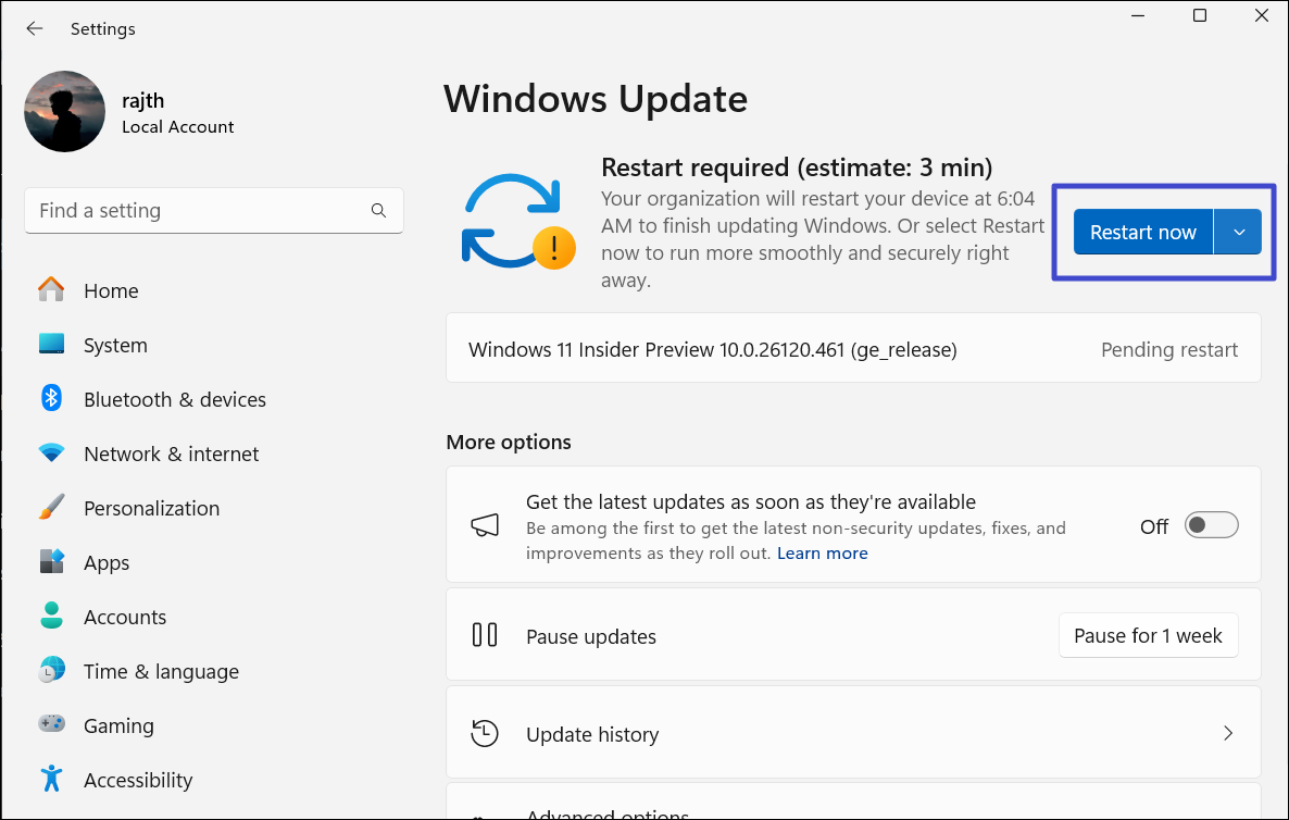 4. Μόλις ολοκληρωθεί η ενημέρωση, κάντε κλικ στο κουμπί ""Επανεκκινήστε τώρα"Εάν ζητηθεί να ολοκληρώσει την εγκατάσταση.