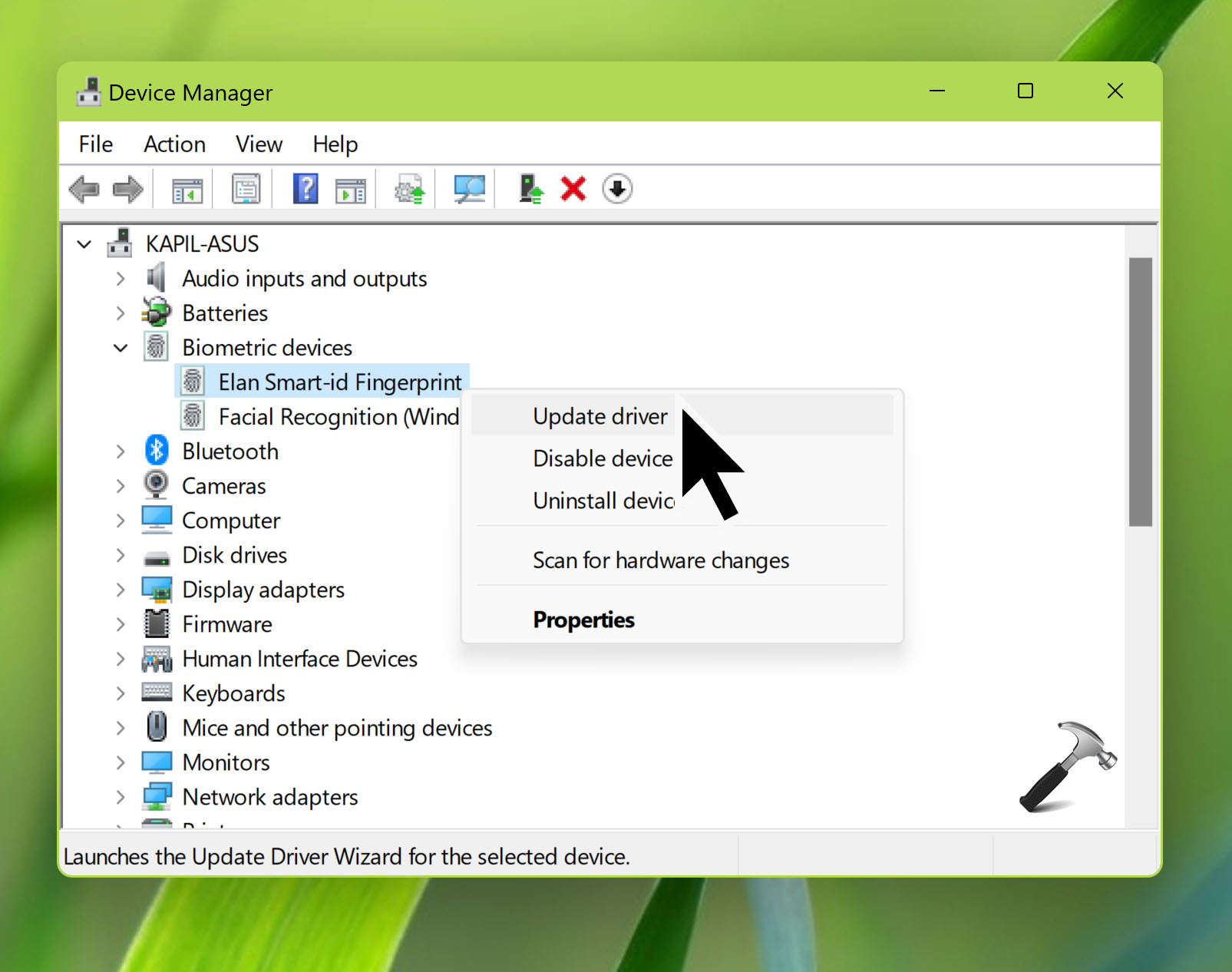 3.Στη συνέχεια, δείτε αν μπορείτε να εντοπίσετε βιομετρικές συσκευές και να την επεκτείνετε. Εάν υπάρχει μια κρυφή συσκευή με αναγνώστη δακτυλικών αποτυπωμάτων, κάντε δεξί κλικ σε αυτό και επιλέξτεΕνημέρωση του προγράμματος οδήγησης.