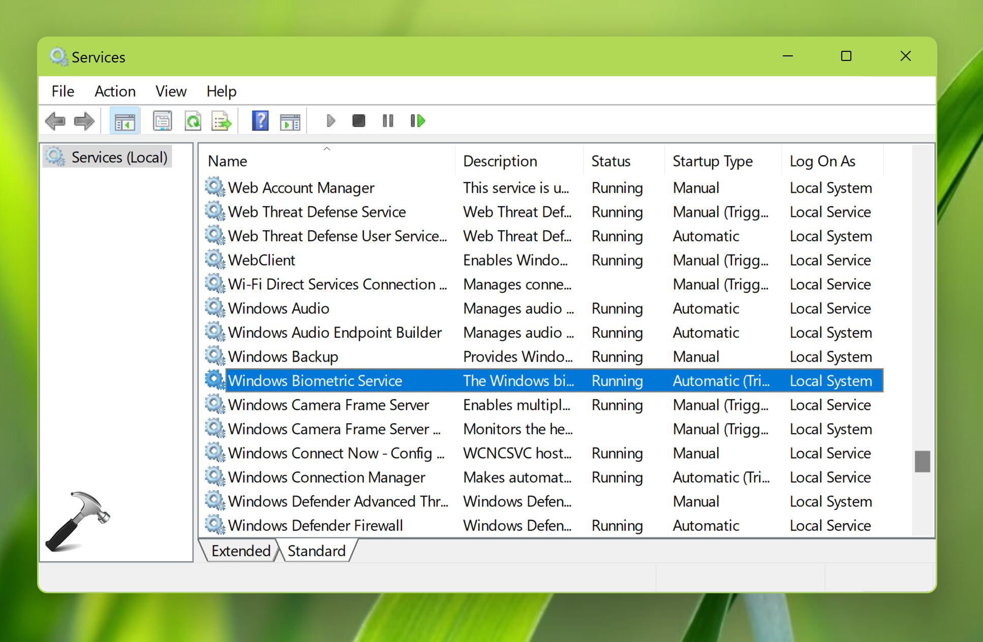 2.Στο παράθυρο Υπηρεσιών, μετακινηθείτε προς τα κάτω και αναζητήστε τοWindows Biometric Service.