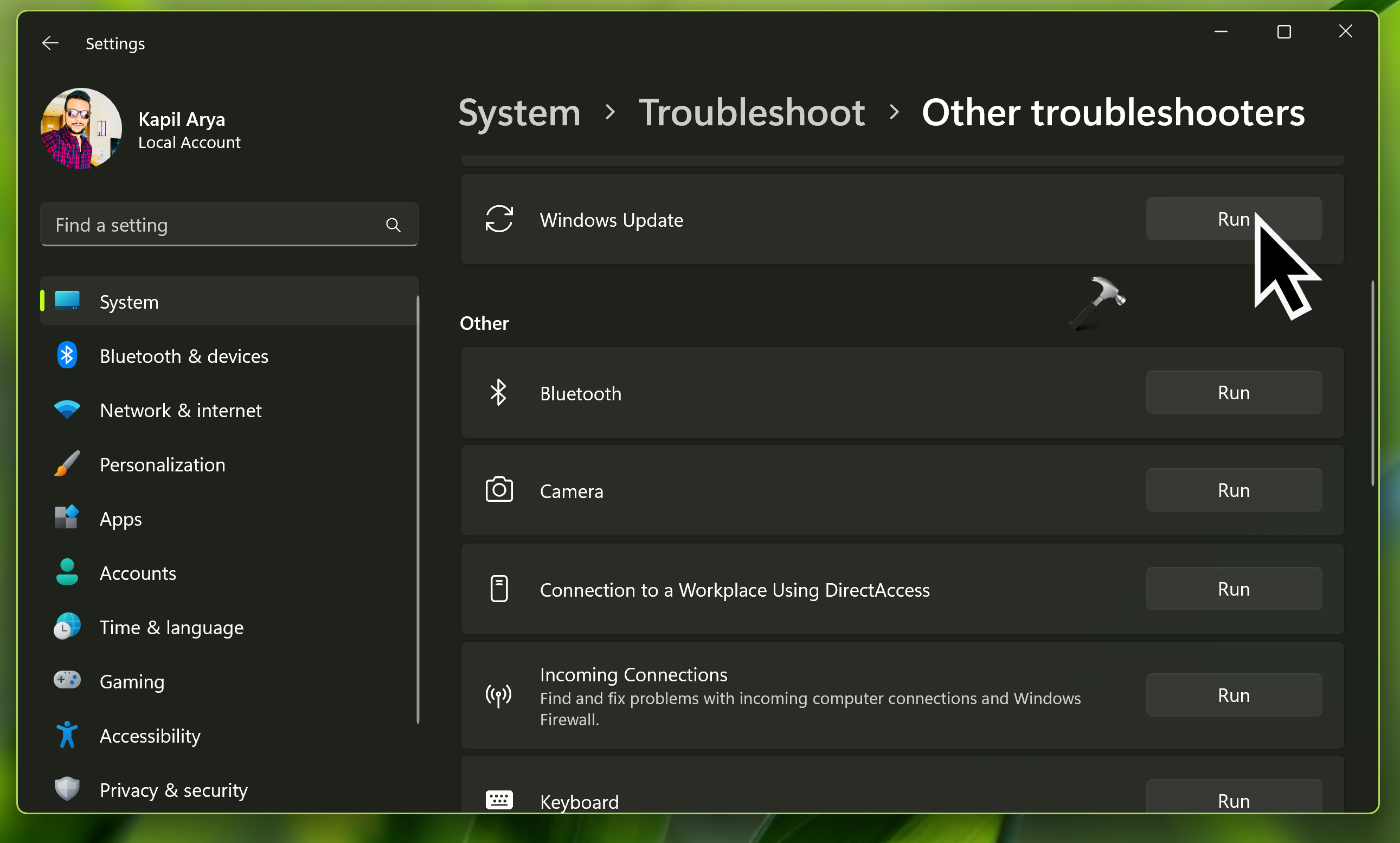 2.Στην εφαρμογή Ρυθμίσεις, μεταβείτε στοΣύστημα> Αντιμετώπιση προβλημάτων> Άλλοι αντιμετώπιση προβλημάτων.