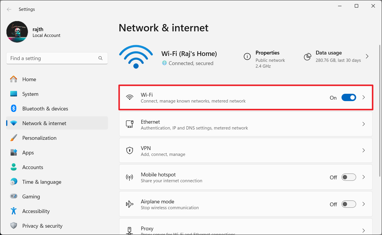 1. Ανοίξτε τις ρυθμίσεις και μεταβείτε στο "Δίκτυο & Διαδίκτυο">"Wi-Fi«.