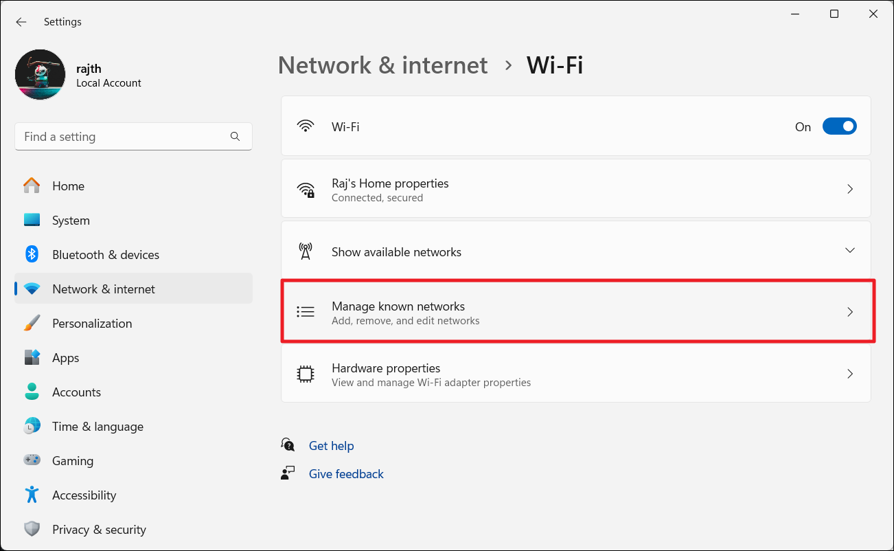 3. Στη συνέχεια, επιλέξτε "Διαχείριση γνωστών δικτύων«.