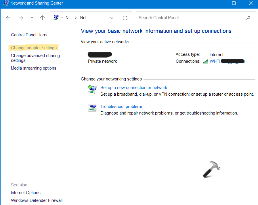 2.Μετά από αυτό, κάντε κλικ στοΑλλαγή ρυθμίσεων προσαρμογέαΠαρουσιάστε στα αριστερά.