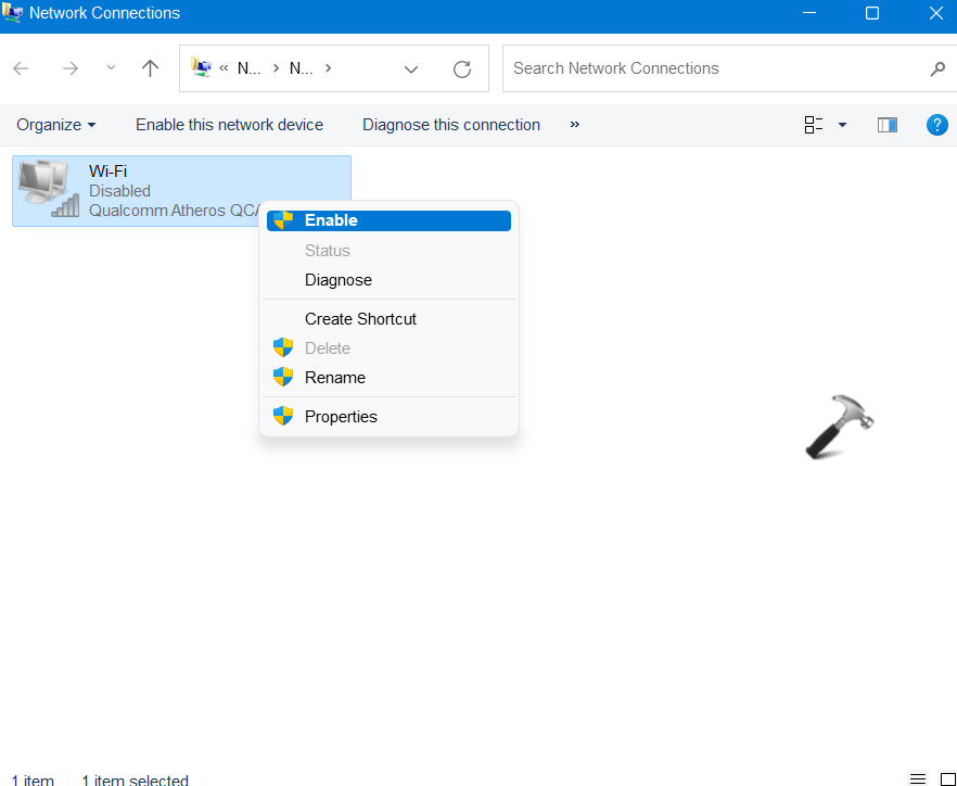 3.Τώρα, κάντε δεξί κλικ στοWifiκαι επιλέξτε τοΚαθιστώ ικανόεπιλογή.