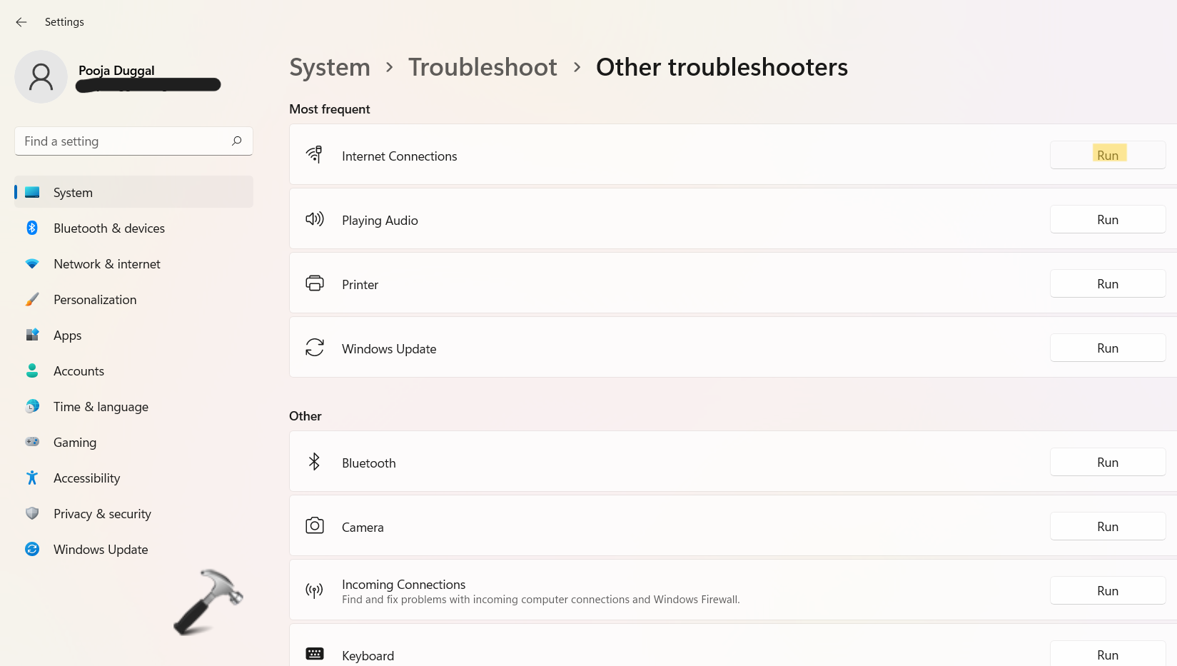 2.Στη συνέχεια, επιλέξτε τοΆλλοι αντιμετωπίζες αντιμετώπισης προβλημάτωνεπιλογή κάτω από επιλογές.