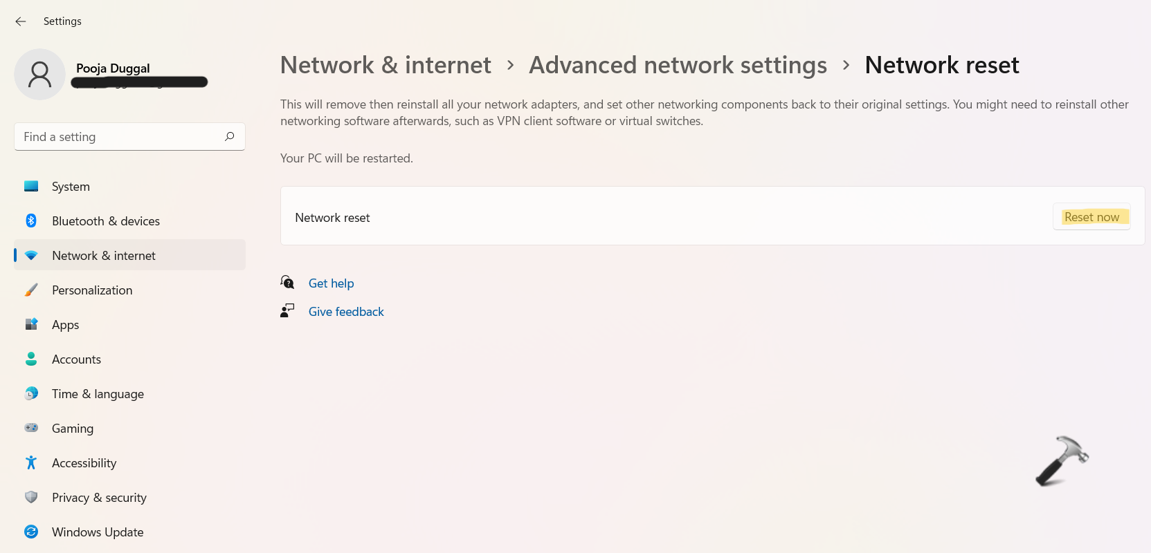 3.Τώρα, κάντε κλικ στοΕπαναφορά τώραΗ καρτέλα παρουσιάζει δίπλα στοΕπαναφορά δικτύου.