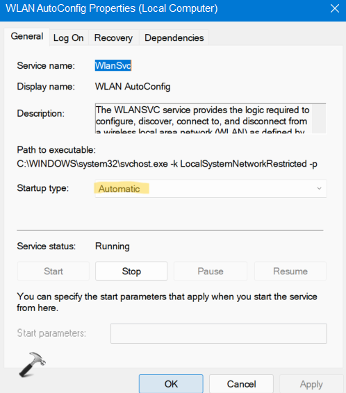 Fix 3: Αυτοματοποίηση της υπηρεσίας Autoconfig WLAN