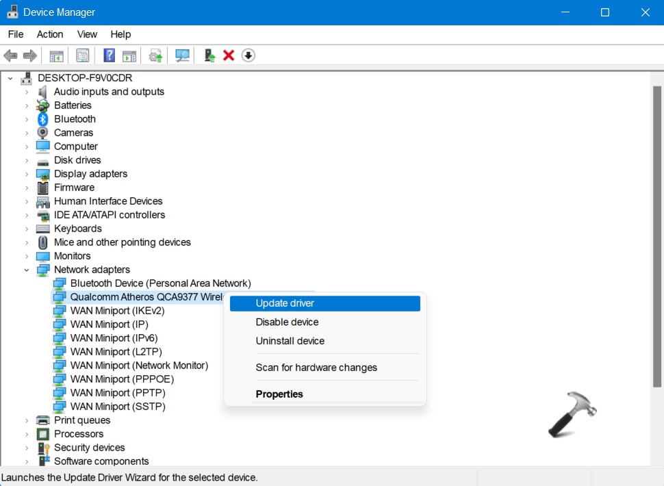 Διορθώστε 2: Ενημέρωση του προσαρμογέα δικτύου Wi-Fi