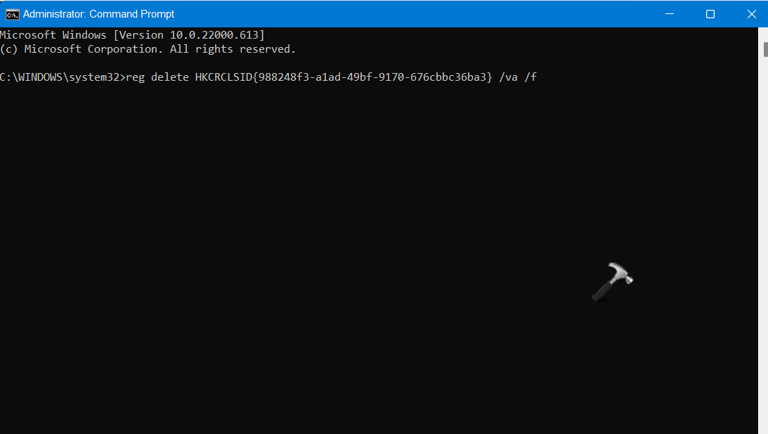 reg delete HKCRCLSID{988248f3-a1ad-49bf-9170-676cbbc36ba3} /va /f