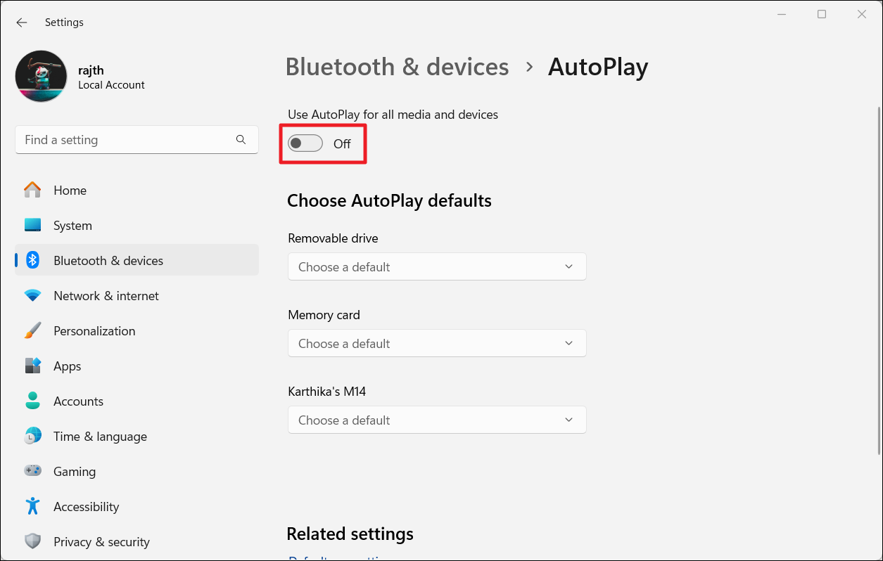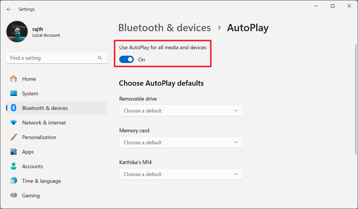 2. Περιηγηθείτε στο "Bluetooth & Devices "> "Αυτόματη αυτόματη ".