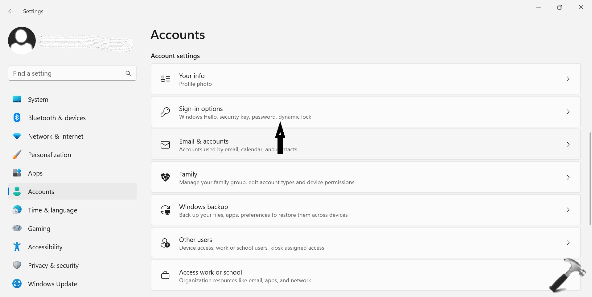 2. Κάντε κλικ στοΛογαριασμοίαπό το αριστερό παράθυρο, καιΣυνδεθείτε επιλογέςαπό τα δεξιά.