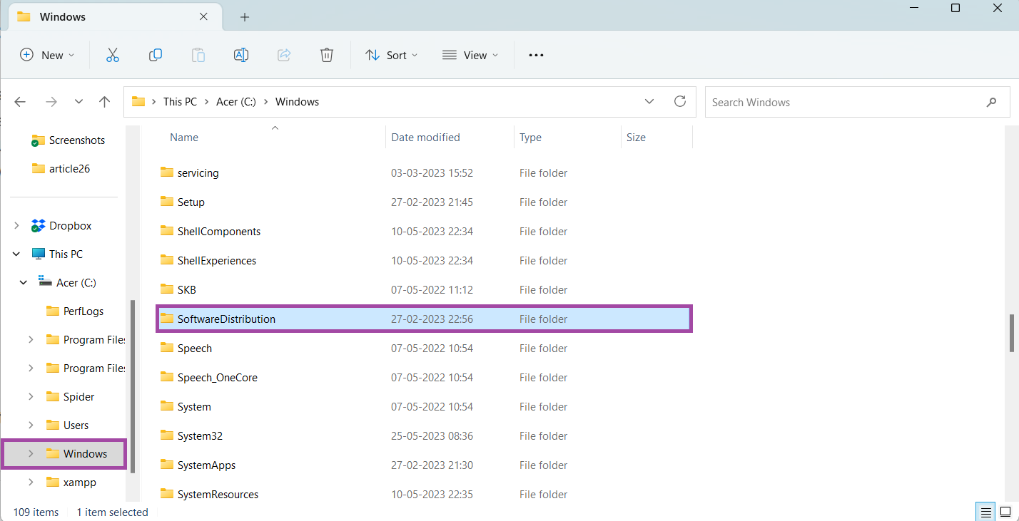 Επιλέξτε όλα τα αρχεία και τους φακέλους στο φάκελο SoftwaredIntribution και διαγράψτε τα.