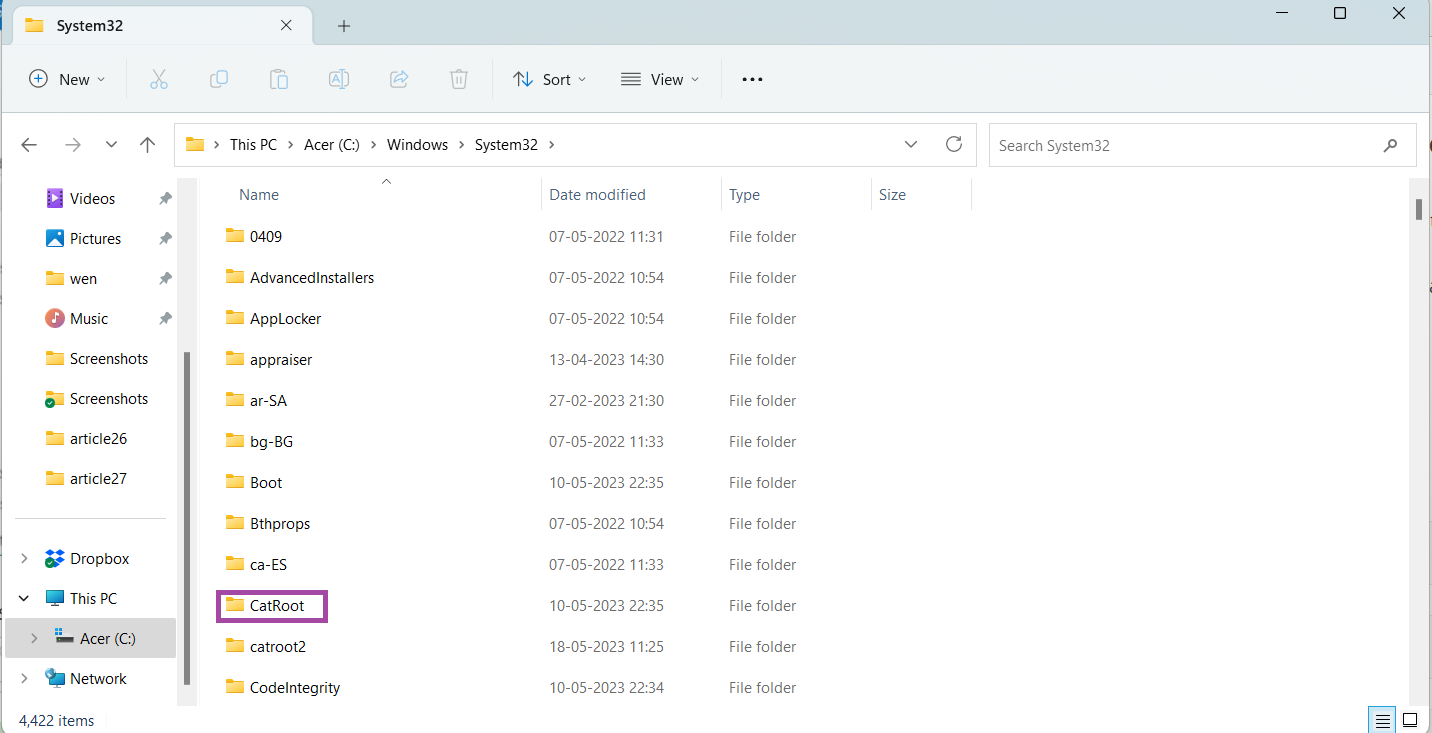 Διορθώστε 5: Διορθώστε τα Windows 11 Κάτι δεν πήγε όπως είχε προγραμματιστεί σφάλμα επαναφέροντας το φάκελο Catroot