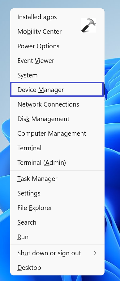 1. Πατήστε το πλήκτρο Windows + X και επιλέξτε "Διαχείριση συσκευών".