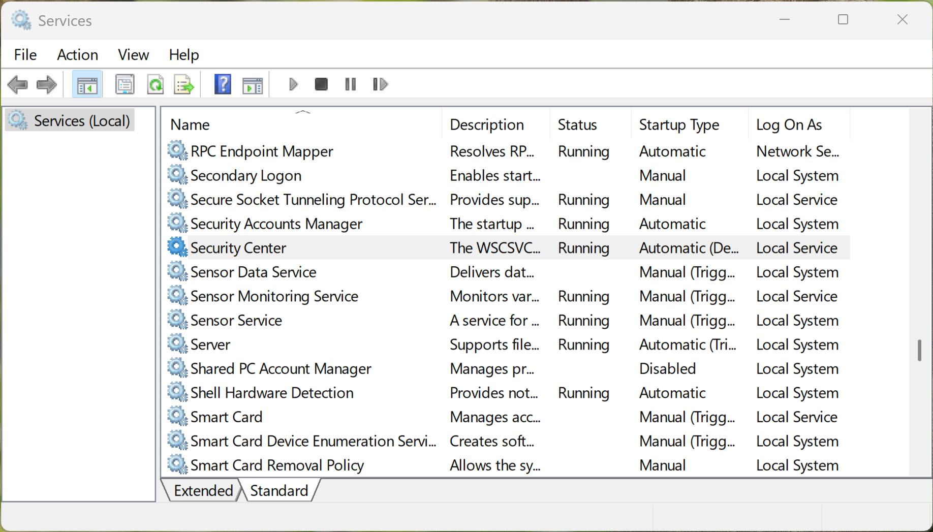 6. Η υπηρεσία ασφαλείας των Windows θα πρέπει να ξεκινήσει μη αυτόματα.