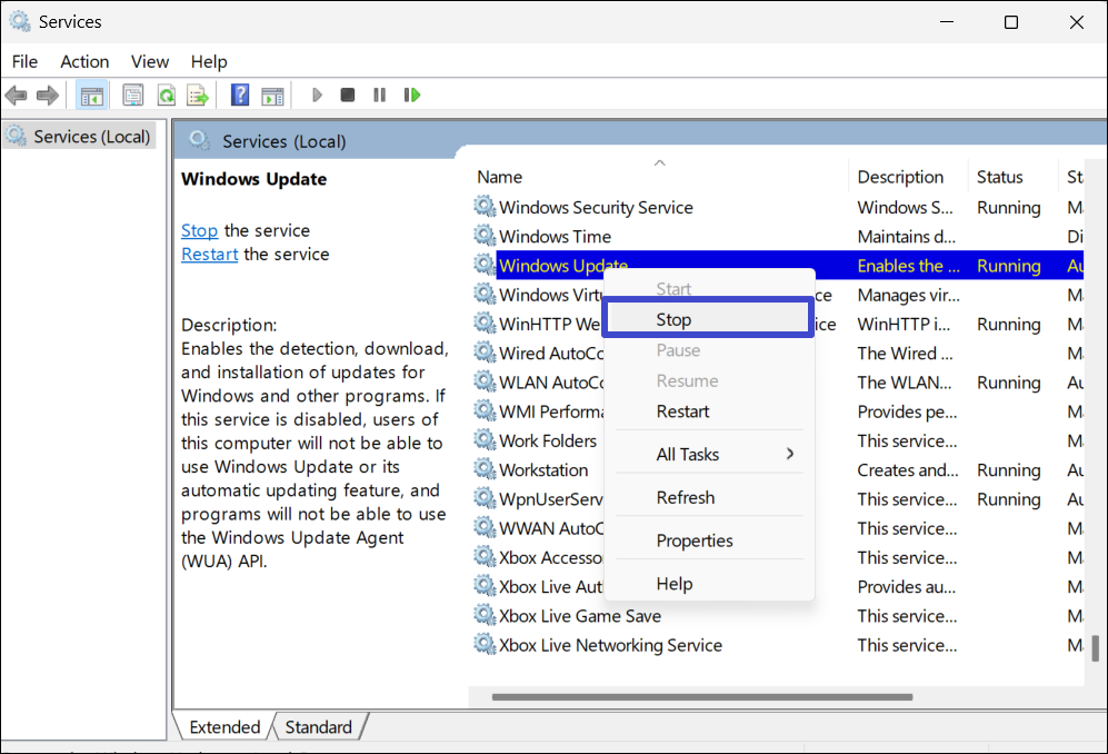 Εάν η επανεκκίνηση των υπηρεσιών Windows Update δεν επιλύει το πρόβλημα, η απενεργοποίηση του μπορεί να μειώσει εντελώς τη χρήση της CPU.