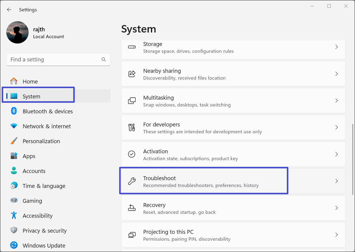 2. Πηγαίνετε στο "Σύστημα"Καρτέλα και, κάντε κλικ στο"Αντιμετώπιση προβλημάτων"Στα δεξιά.