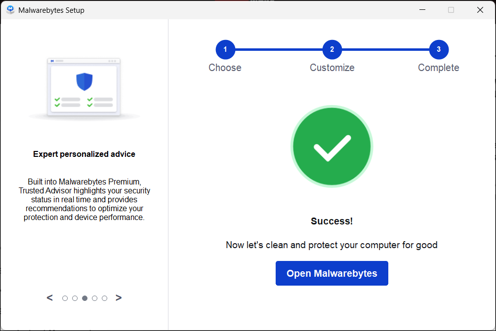 2. Εκτελέστε το αρχείο εγκατάστασης που κατεβάστηκε (Mbsetup.exe) και ακολουθήστε τις οδηγίες στην οθόνη για να εγκαταστήσετε την εφαρμογή. Κατά την εγκατάσταση φροντίστε να επιλέξετε "Προσωπικός"Χρήση στο βήμα τύπου παραγωγής.
