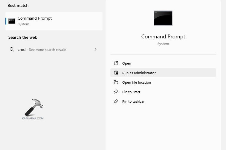 1. Για αυτό, πατήστε Windows + S, γράψτε CMD. Στη συνέχεια, κάντε δεξί κλικ στην γραμμή εντολών και επιλέξτε Εκτέλεση ως διαχειριστής.