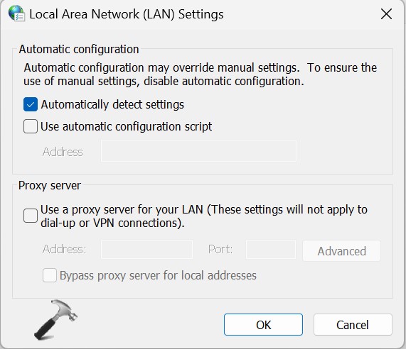 5. Κάντε κλικ στοΕΝΤΑΞΕΙ, τότεΕφαρμόζω, ακολουθούμενη από την πίεσηΕΝΤΑΞΕΙσε ιδιότητες του Διαδικτύου για να ενεργοποιήσετε αυτόματα τις ρυθμίσεις.