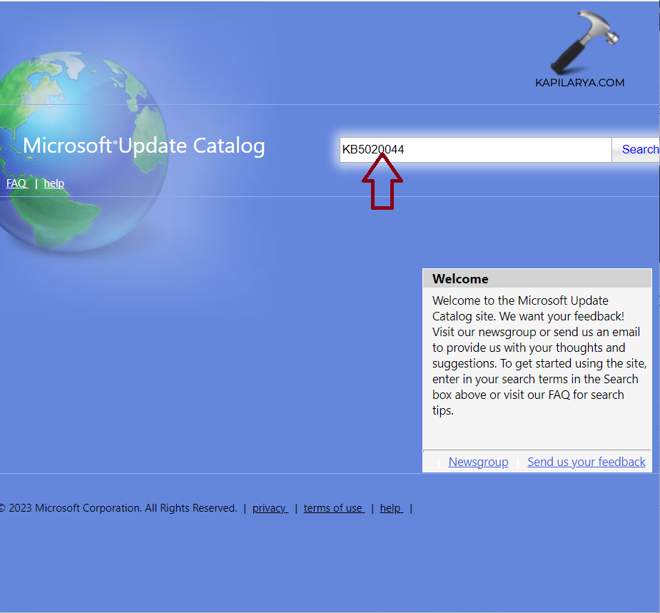 1. Ανοίξτεhttps://catalog.update.microsoft.comAKA Microsoft Update Catalog Website.
